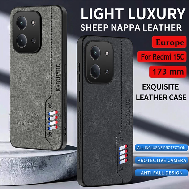 For Redmi 15C 4G 5G 173MM European version Case Luxury Solid Color Leather Frosted Soft Edge Back Cover Shockproof Bumper Fudan