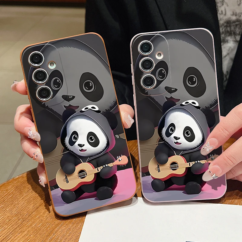 Guitar Panda Pattern Phone Case For Samsung Galaxy S25 Edge S24 S23 Ultra S22 S21 Plus S25 S24 FE Silicone Leather Texture Cover