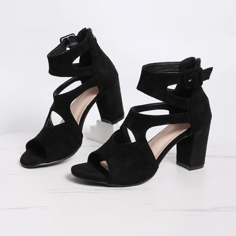 2025 Summer Women's New Hollow Design High Heel Sandals Fashion Casual Roman Shoes