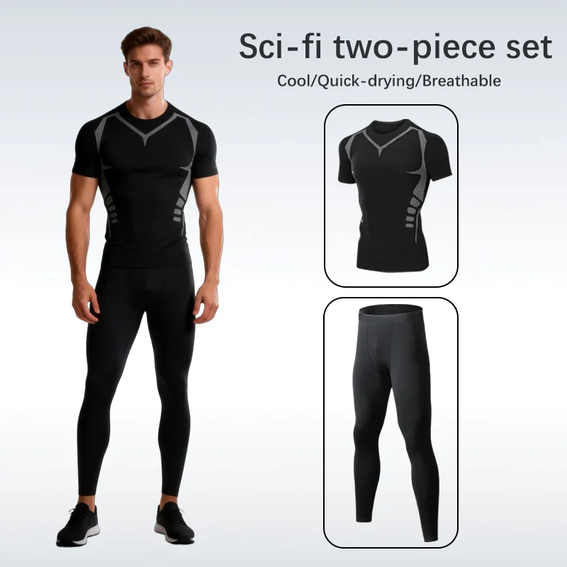 2026 Fashionable Men's Pattern Sleeveless Tight Fitting Sports Suit,Quick Drying Elastic Vest, Gym Running Vest Set, Printed Top