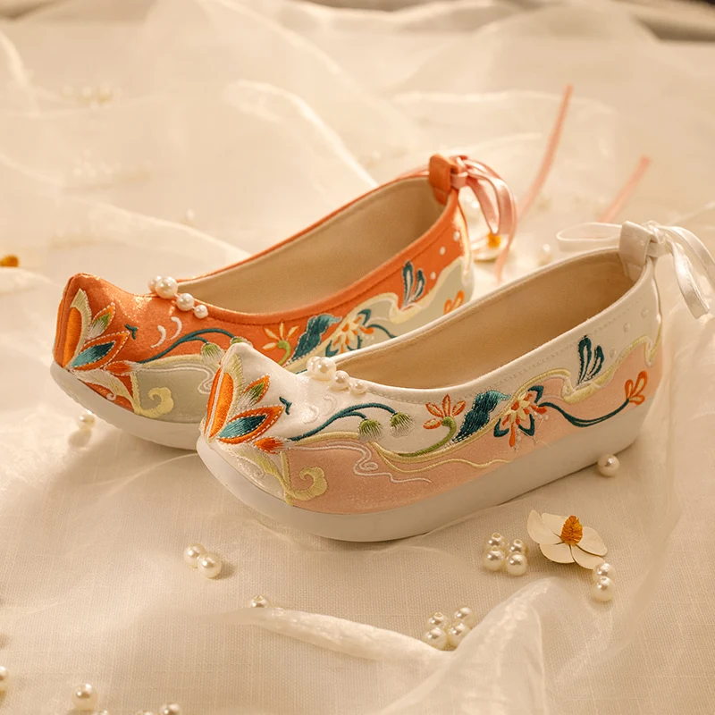 Tang Dynasty Chinese Style Hanfu Women's Shoes Ancient Style Embroidered Shoes Casual Women's Boots Elegant Shoes Height 4cm