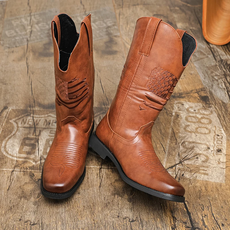 2025 Plus Size 44 Women's Embroidered Western Knee High Boots Cowboy Cowgirl Boots Chunky Heel Boots Women Western Shoes