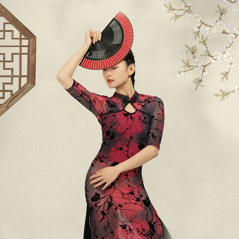 Chinese Folk Dance Dresses for Women Classical Dancing Practice Costume Elegant Ladies Embroidery Cheongsam Performance Outf khj