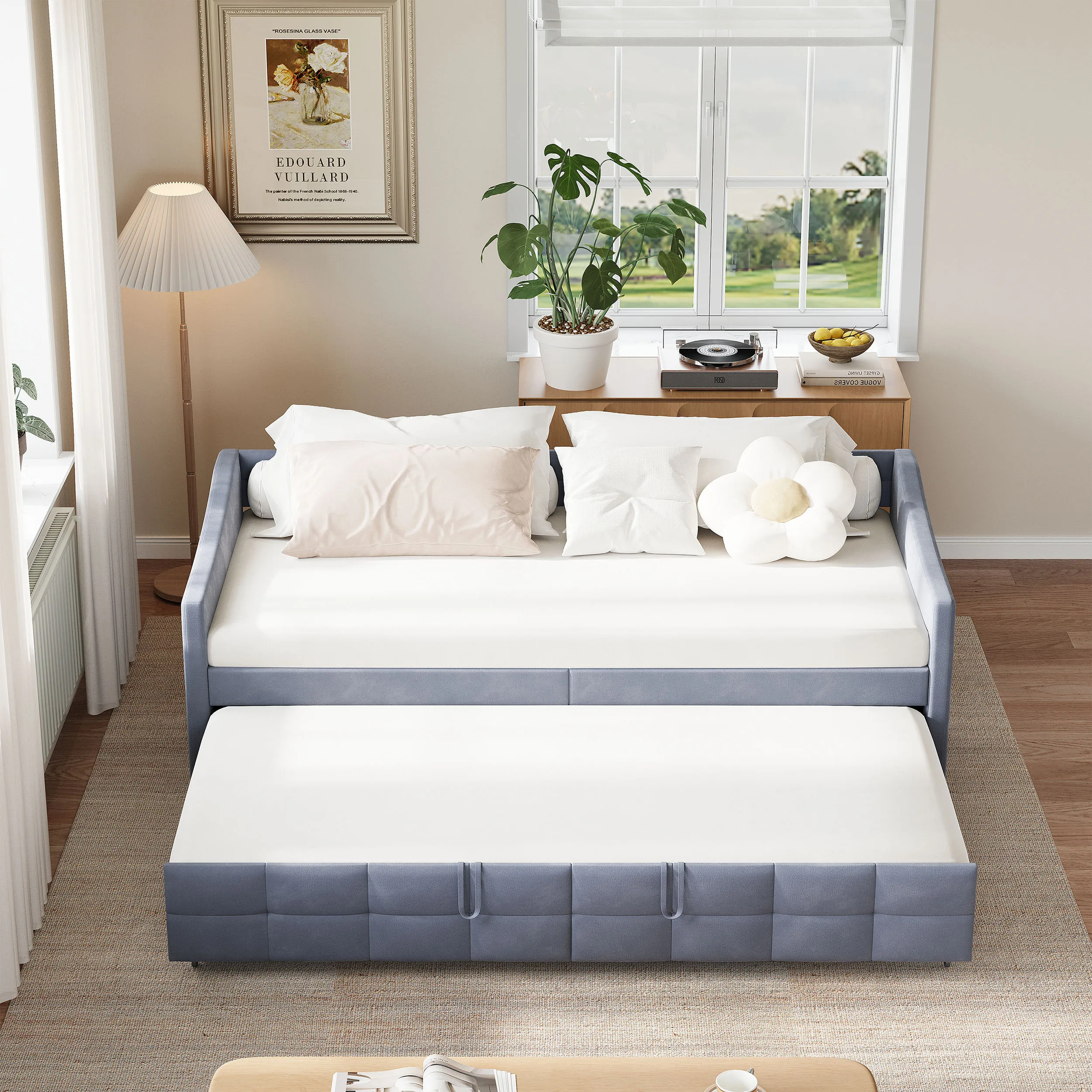 Expandable Baton sofa-bed 90/180x200 cm with slaty box, multi-function day bed, sofa-bed, velvet, no mattress,