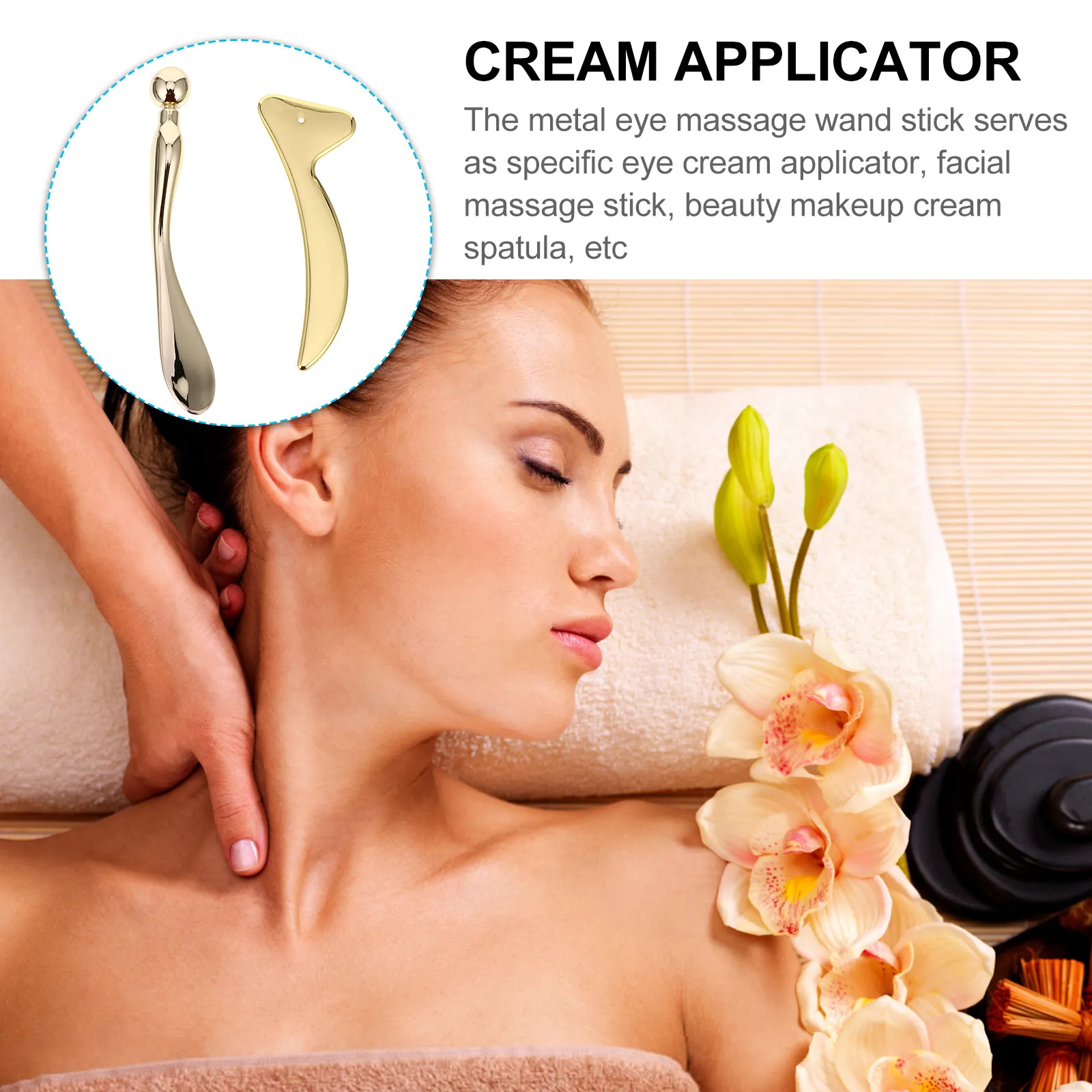 2Pcs Facial Massage Stick Metal Gua Sha Scraping Board Cream Applicator Eye Cream Tool Cooling Beauty Instrument