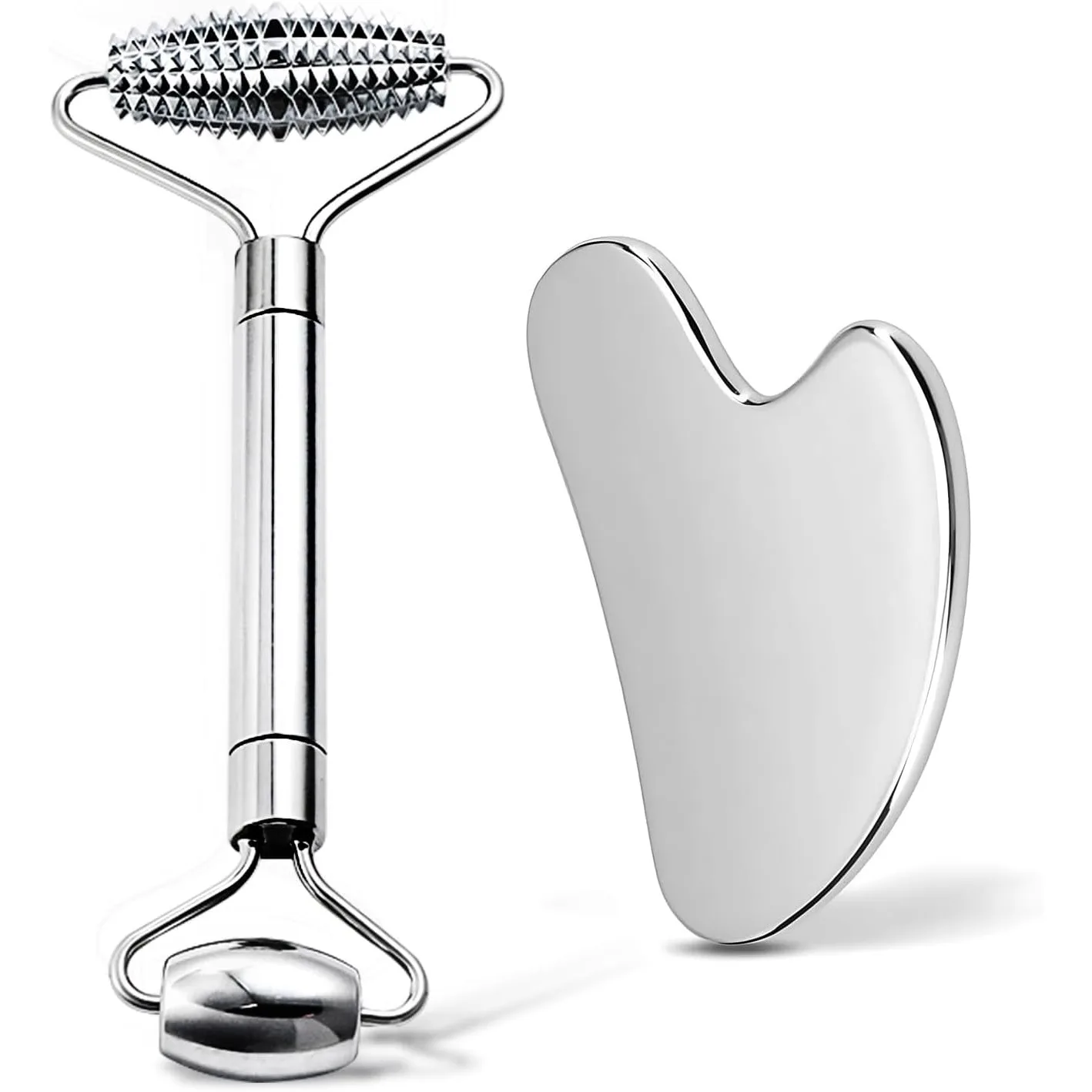 Gua Sha Facial Tools and Face Roller Stainless Steel Facial Sculpting Eyes Roller Guasha for Chin & Jawline Sculpting Skin Care