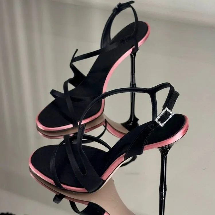 Black Stiletto Heels 2026 New Summer Open-Toe Satin Color-Block Strap Versatile Elegant Date Sandals for Women