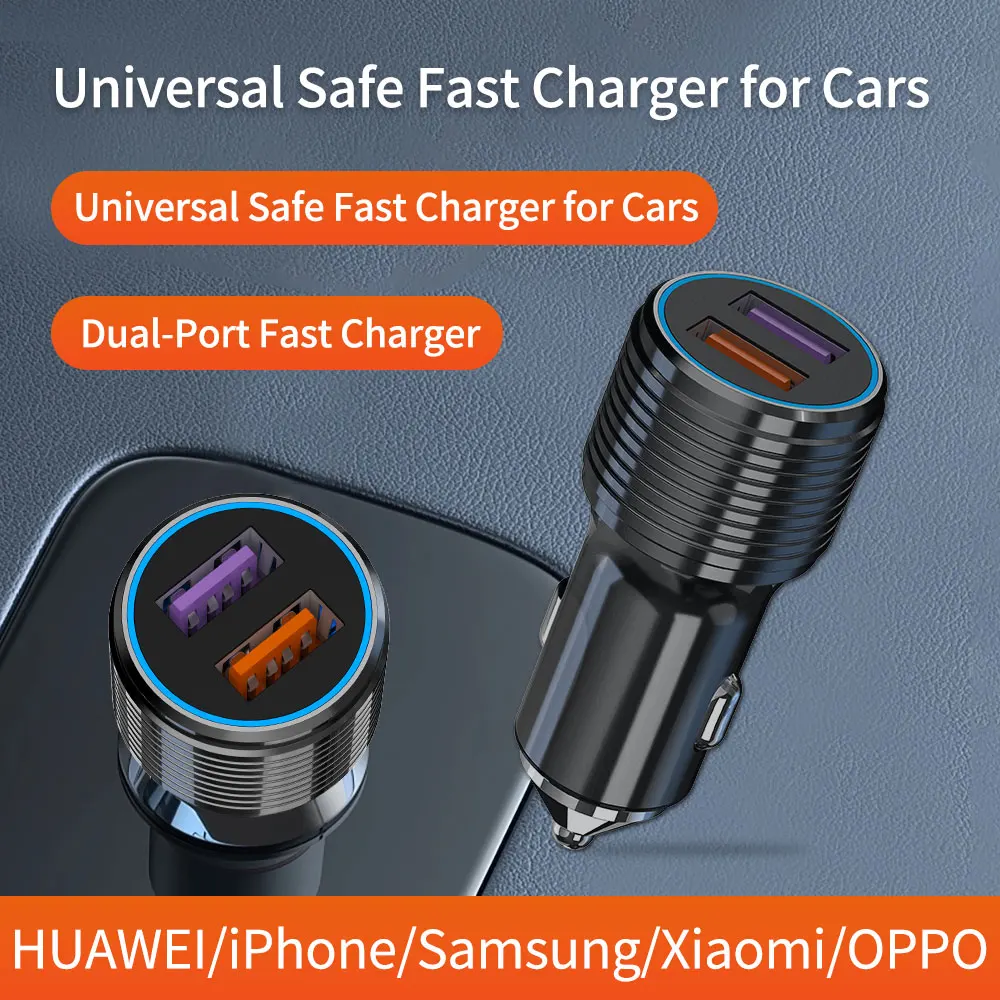 66W Car Charger Dual USB Ports Independent Fast Charging Compatible with iPhone Huawei Xiaomi Oppo Vivo Samsung