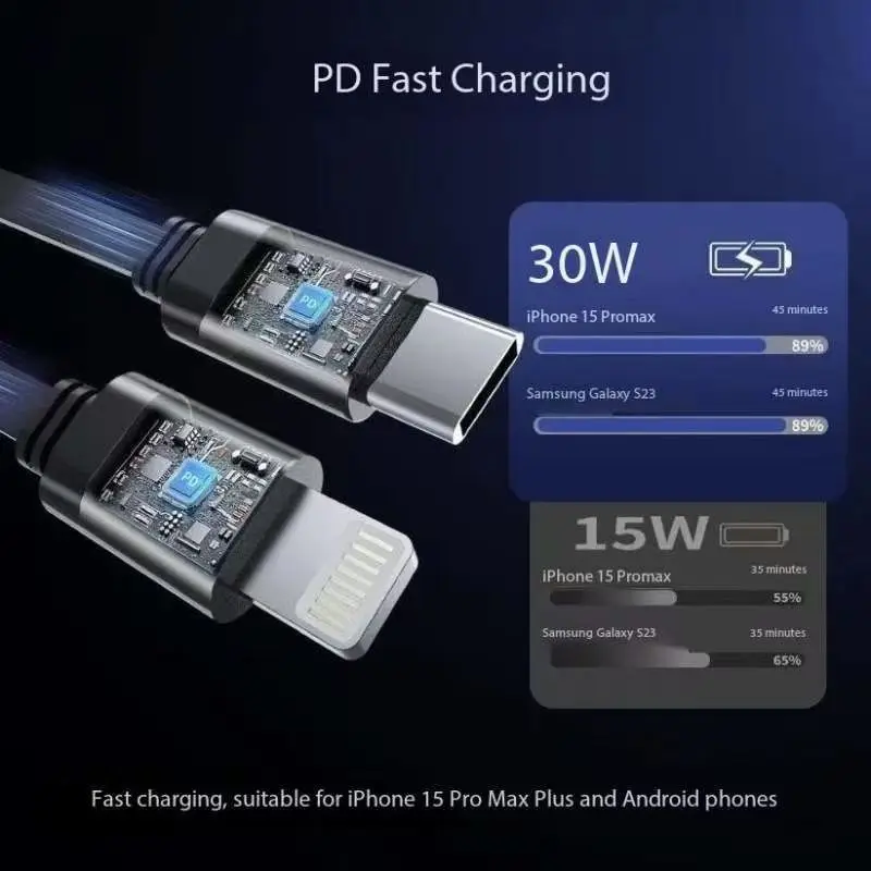 Upgraded Retractable Car Charger 3 in 1, 69W Fast Charging PD30W+2.4A Voltage Display Dual Cables for iPhone & Android