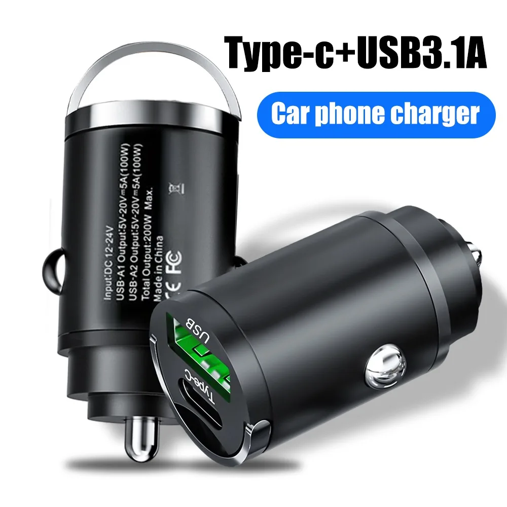 100/200W Mini Car Charger PD Type C Fast Charging For IPhone QC 3.0 USB C Car Mobile Phone Charger For Samsung Xiaomi Huawei