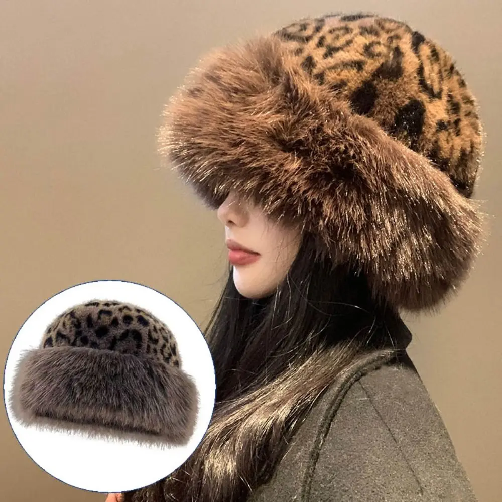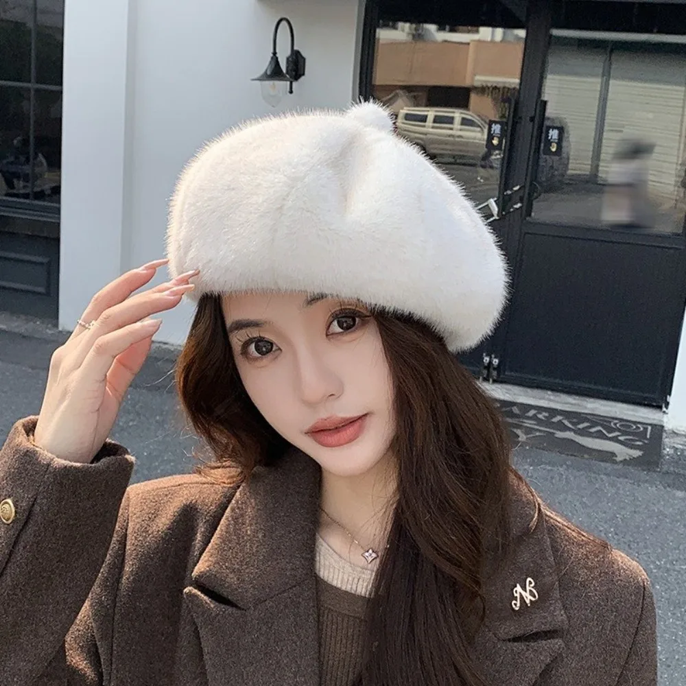 2025 Winter Hat for Women's Imitation Fur Mink Pullover Hat Outdoor Warm Thick Beret Mongolian Princess Ear Protection Cap