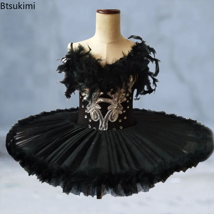 Professional Ballet Tutu Pancake Children Black White Swan Lake Ballet Costume Kids Girls Feather Ballerine Dress Skirts Women