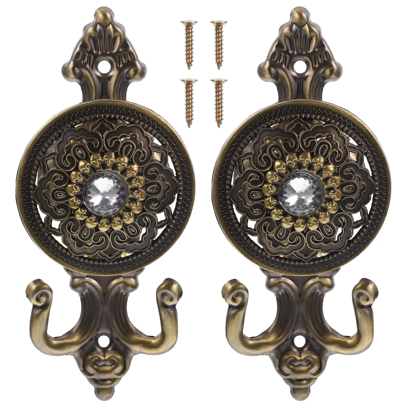2Pcs Zinc Alloy Curtain Holdbacks Decorative Rose Pattern Curtain Tiebacks Side Holders Hooks for Walls Indoor Outdoor