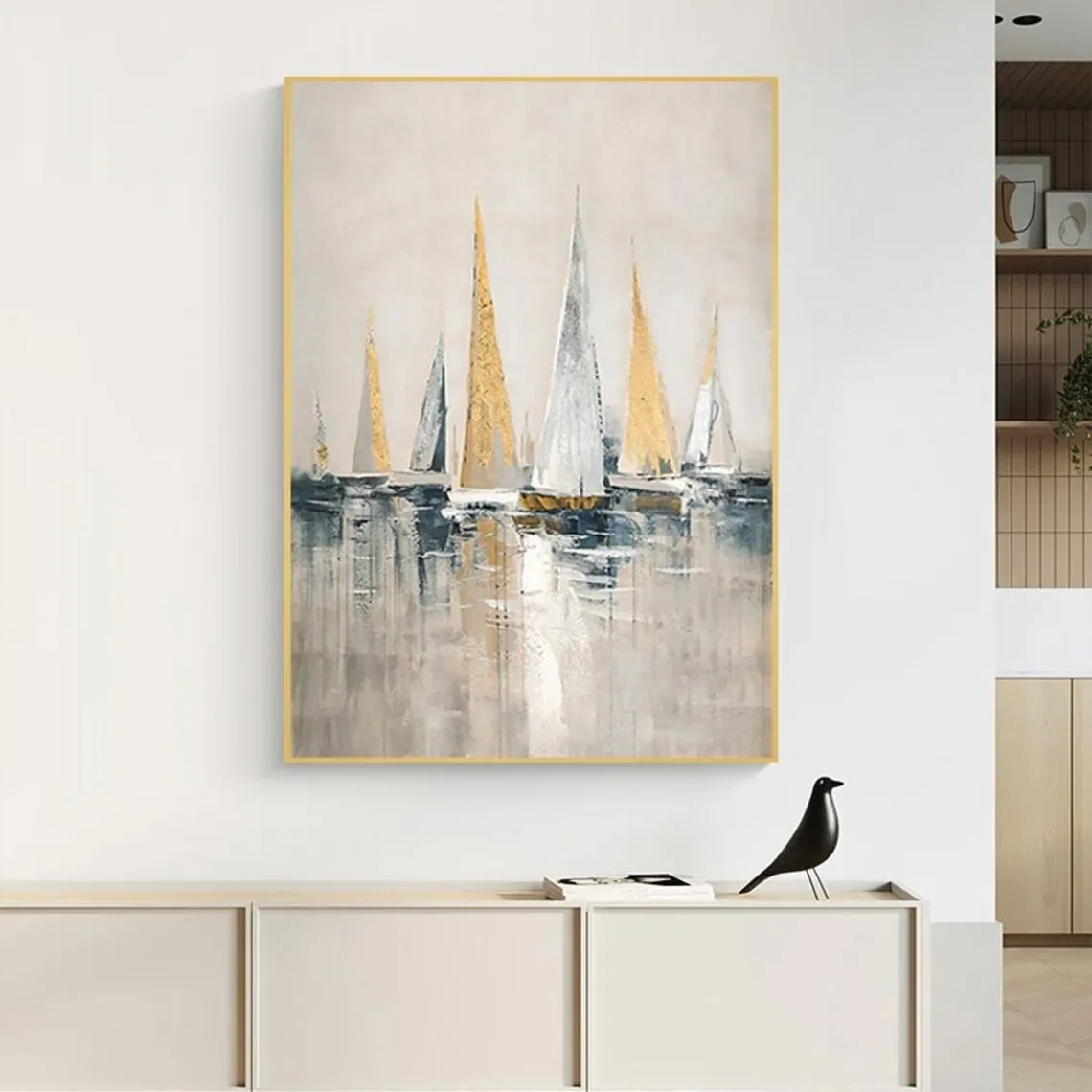 Sail Boat Seascape Painting Handmade On Canvas Modern Wall Decor Wall Art Landscape Large Painting Colorful Farmhouse Home Decor