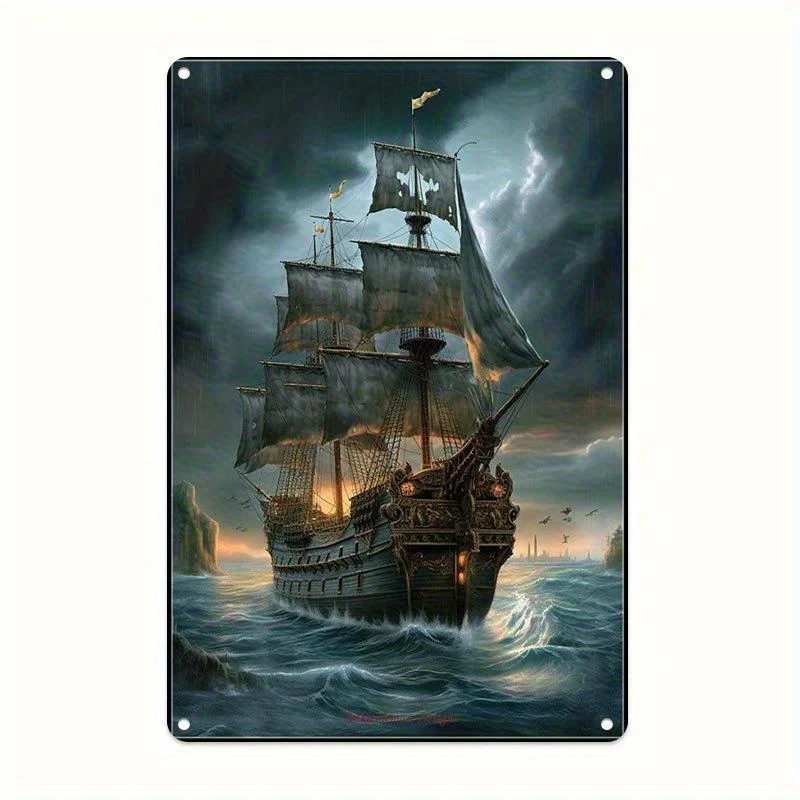 Vintage Nautical Sailing Ship Metal Wall Art Sign - Rustic Home Decor for Living Room, Kitchen, Office, Cafe - Easy to Hang, D
