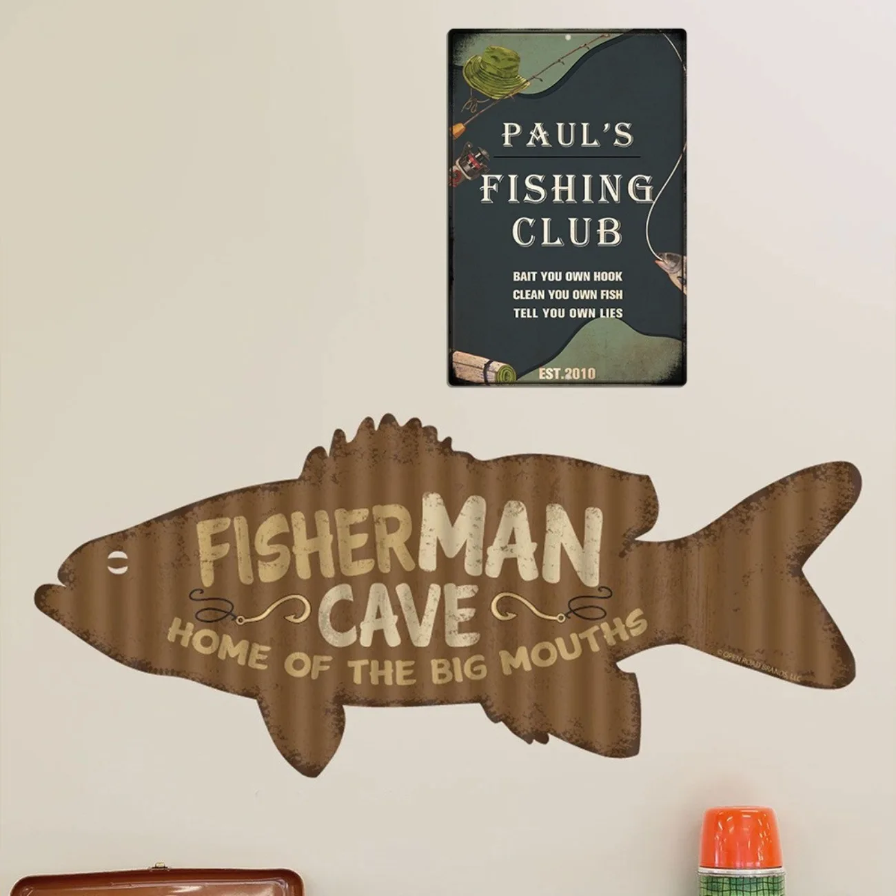 Custom Metal Sign - Personalize with Your Text! "Fishing Club: Bait Your Own Hook, Clean Your Own Fish, Tell Your Own Lies".