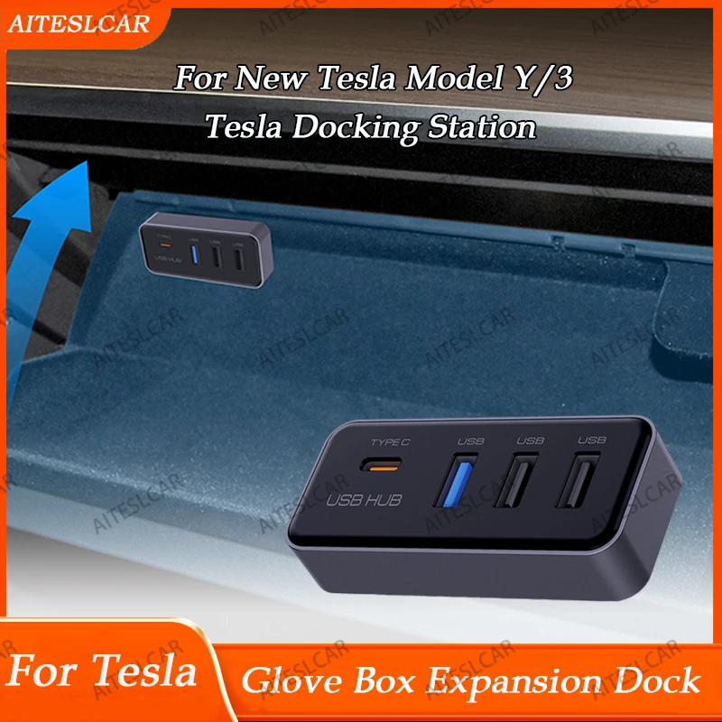 Glove Box USB Hub For Tesla Model 3/Y/3 Highland Glovebox Docking Station For Dashcam Flash Drive Data Transferring Game Music