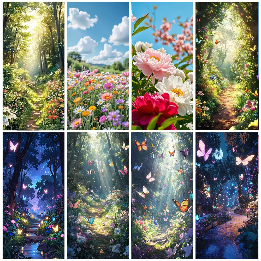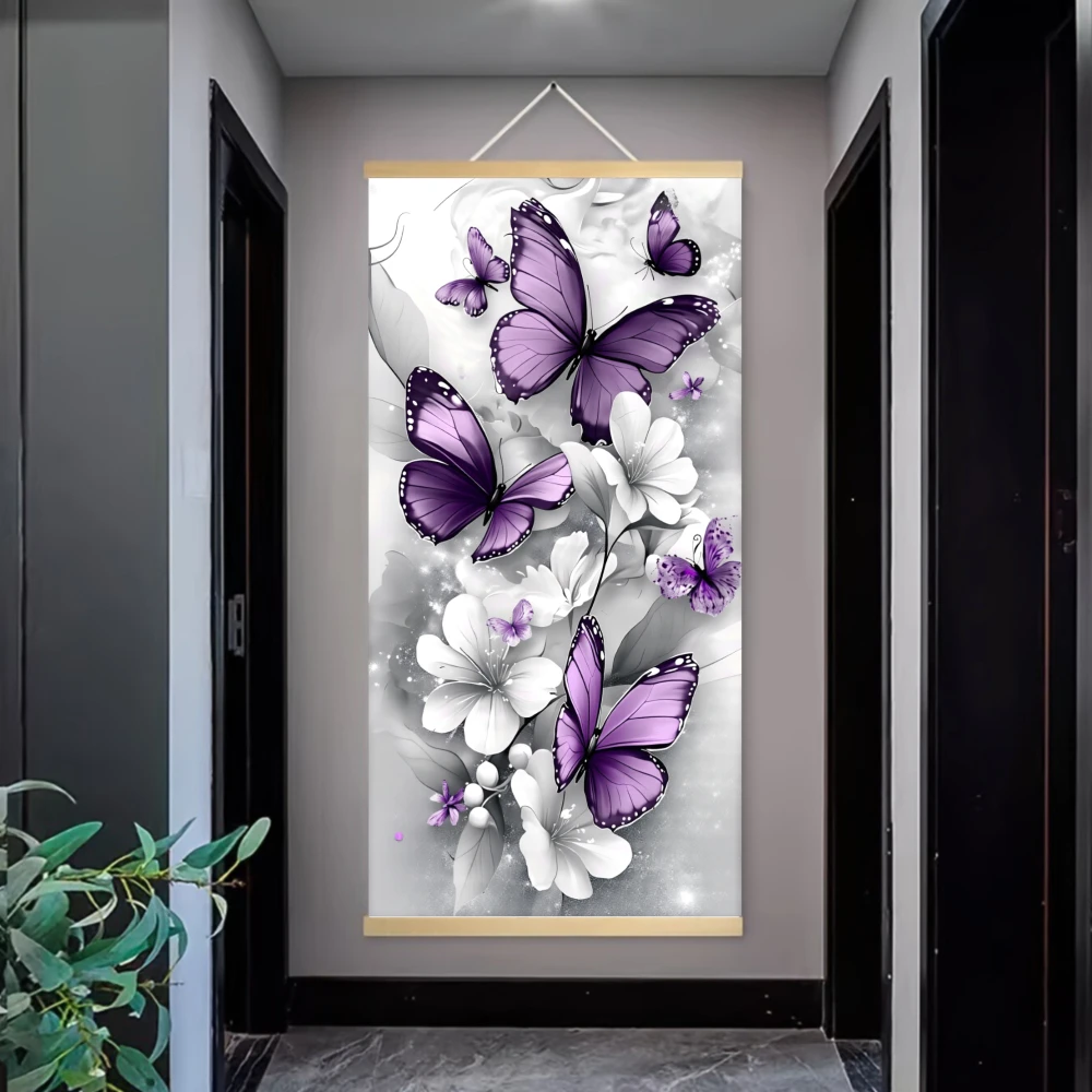 1pc Modern Abstract Purple Butterfly White Flower Wood Scroll Canvas Poster Prints Vibrant Purple Butterflies on Gray Background