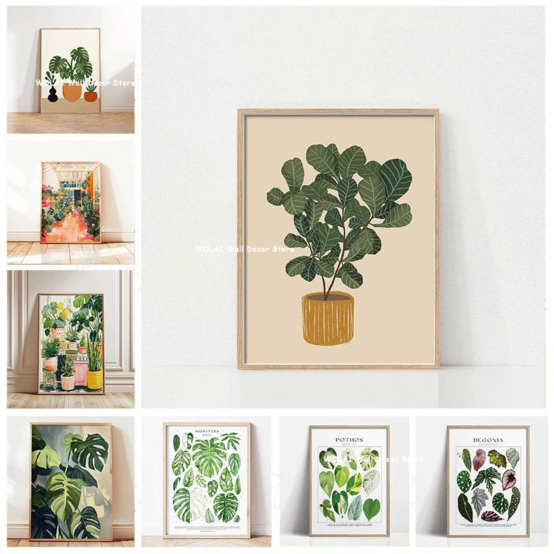 Green Plant Potted Calm Canvas Print Leaves Philodendron Flower Plant Anthurium Wall Art Poster for Bedroom Spring Home Decor