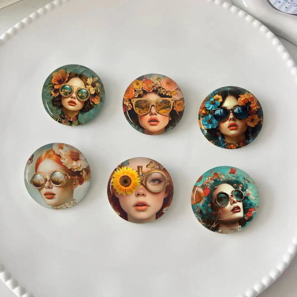 Nordic Boho Fashion Glasses Woman With Flowers Handmade Brooch Cartoon Cosplay Badge On Backpack Jewelry Accessories Gifts
