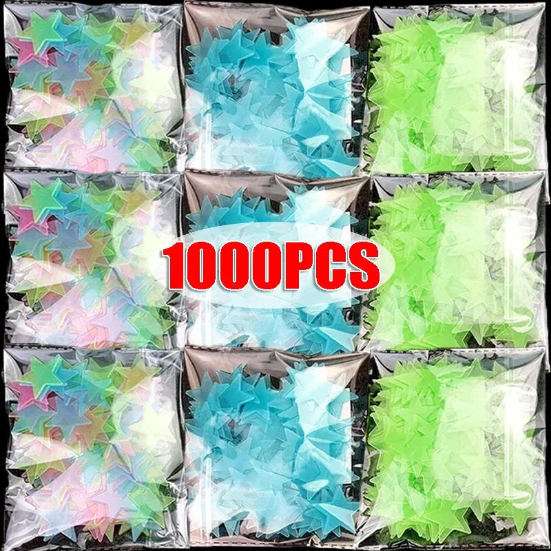 1000/50Pcs Glow in The Dark Stars Wall Stickers Luminous 3D Fluorescent Adhesive Decoration for Home Baby Kids Bedroom Ceiling