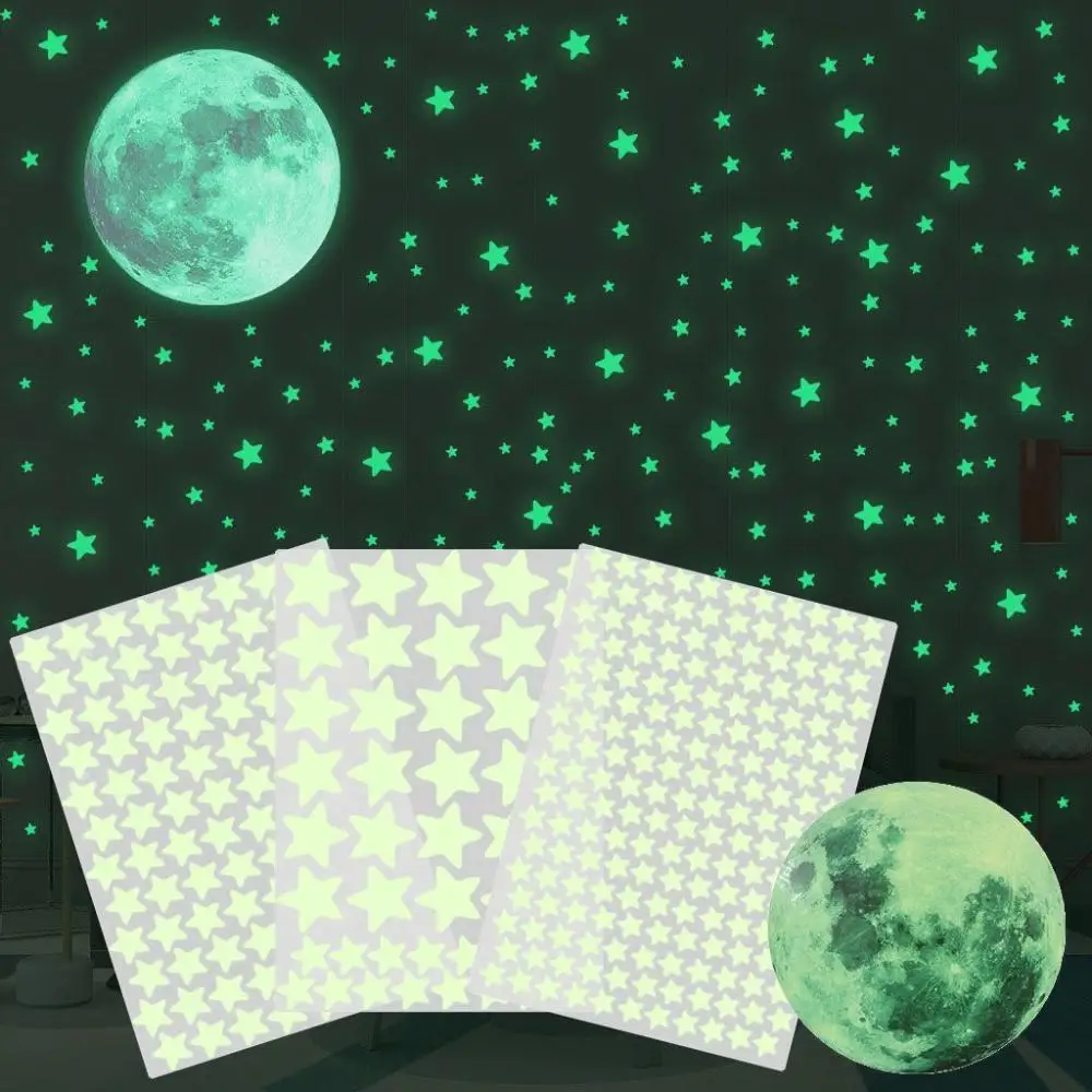 100pcs Stickers Moons Night Art Plastic Removable Bedroom Ceiling Space DIY Star Decal Stars Decor Fluorescent