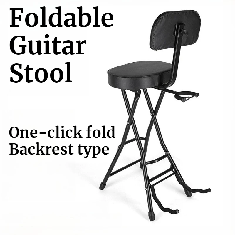 Metal Sponge Guitar Stool Foldable Non-slip Stable Backrest High-footed Electric Guitar Stool Musical Instrument Accessories