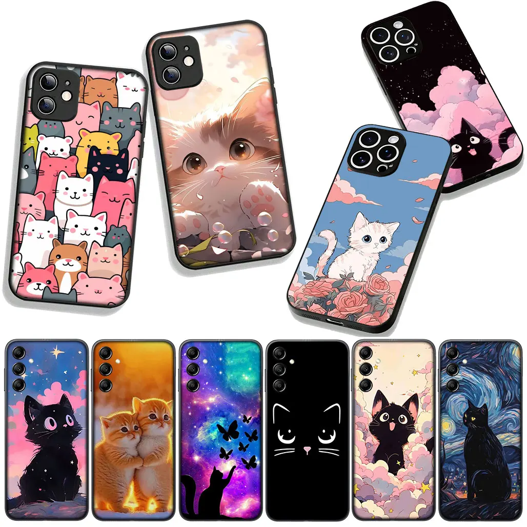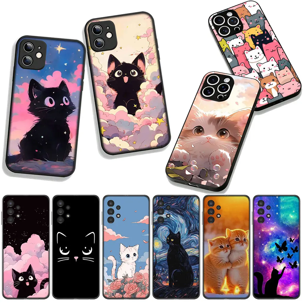 Cartoon Kitten Cat Meow Cover Phone Case for Samsung Galaxy A36 A17 A26 A07 A35 A54 A53 A13 A33 A34 S8 S9 S20 S21 FE S10 Plus