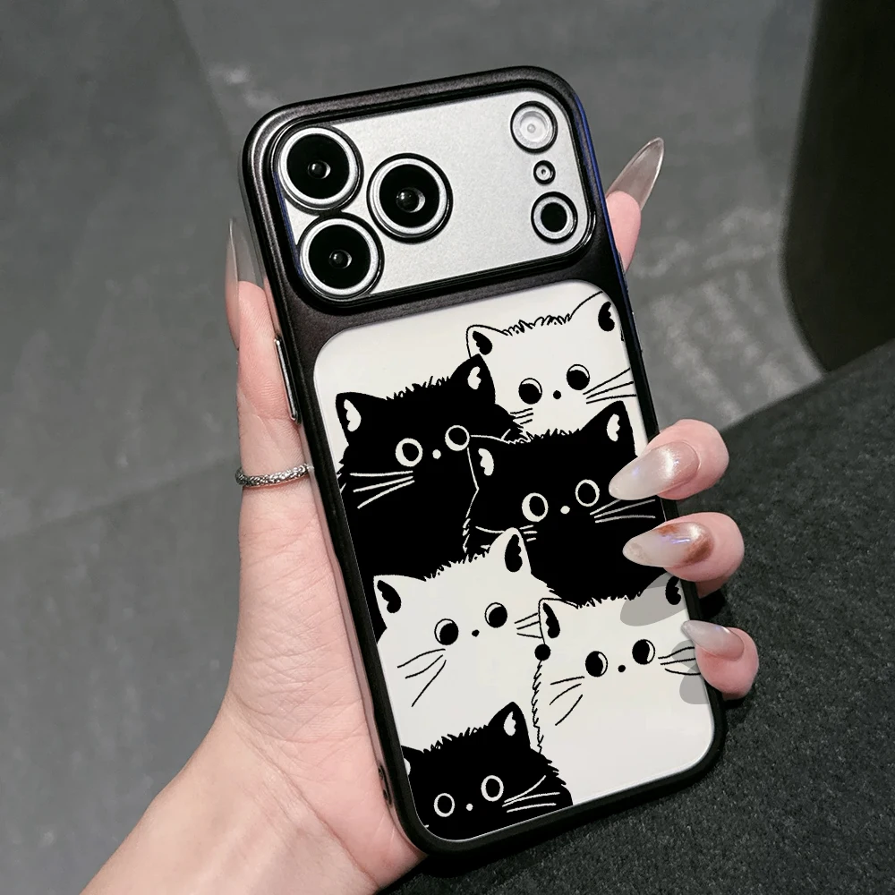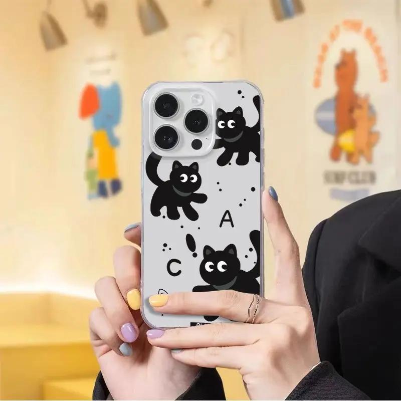 Cute Dotted Black Mischievous Kitten Phone Case For iPhone 17 AIR 16 15 14 13 12 11 PRO MAX PLUS Dustproof Anti Fall Cover