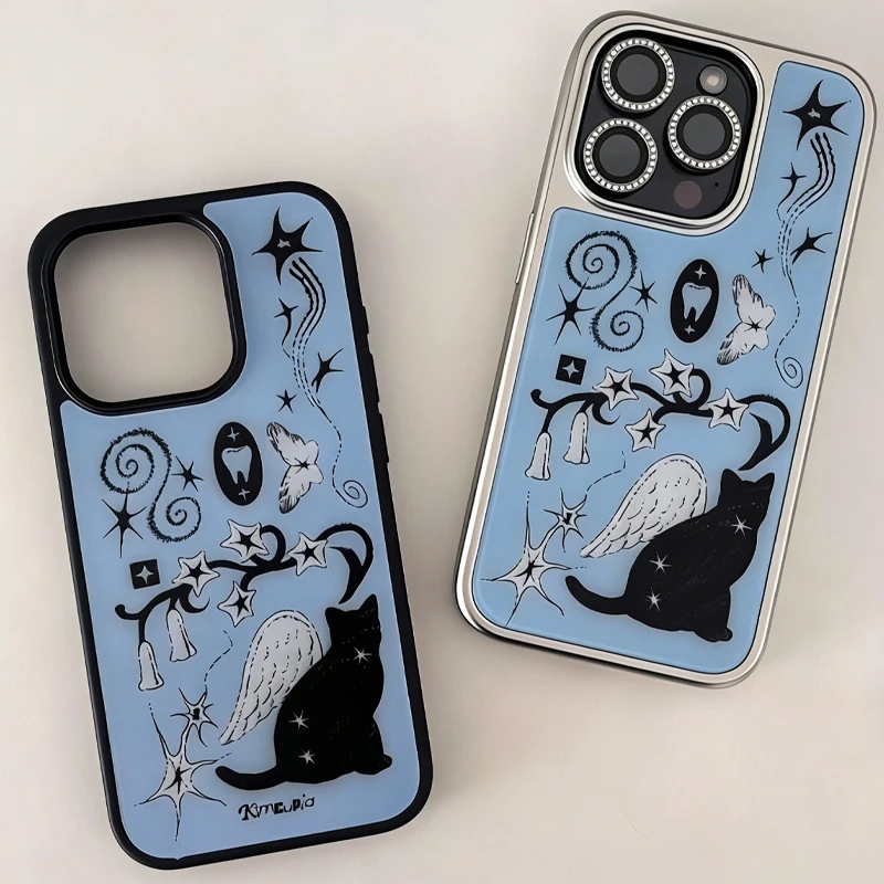 Korean INS Trendy Sweet Cool Fairy Tale Angel Kitten Phone Case For iPhone 17 Air 16 15 14 13 12 11 Pro Max Plus XSMAX Y2K Cover