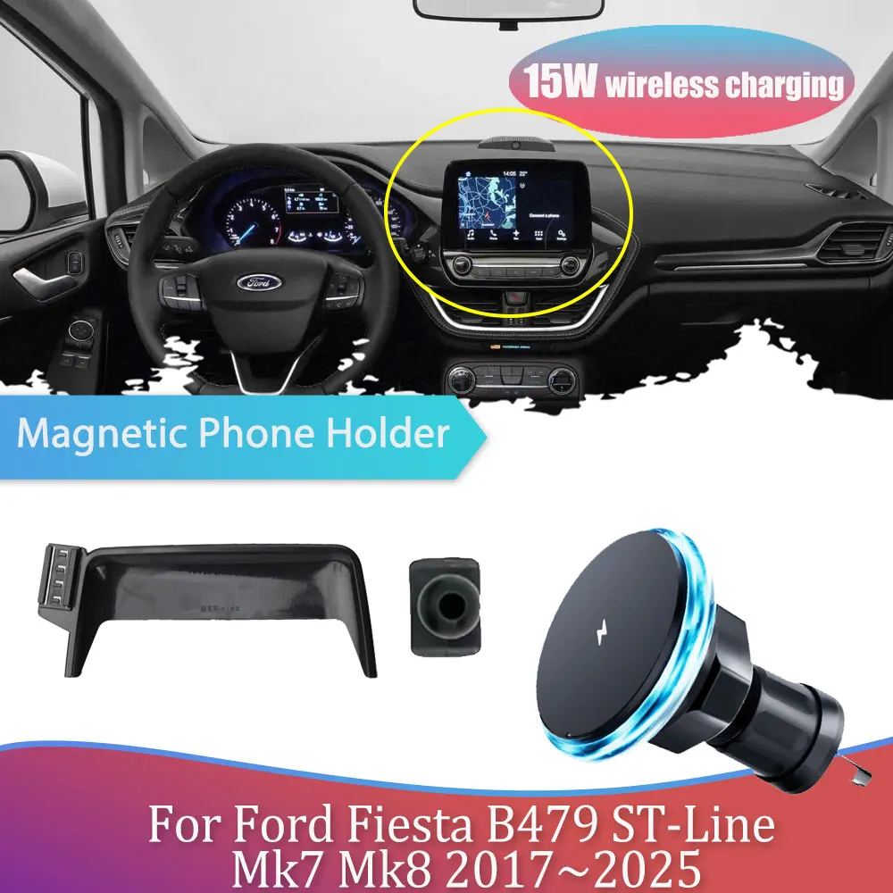 Car Phone Holder For Ford Fiesta B479 ST-Line Mk7 Mk8 2017~2025 Screen Magnetic GPS Support Wireless Charging Accessories iPhone