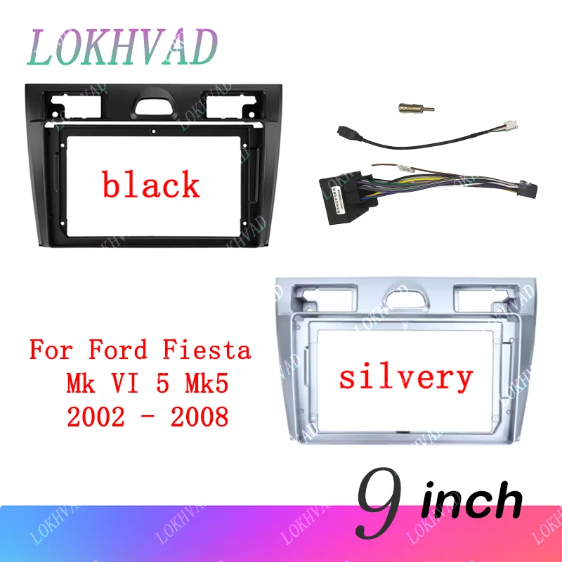 Car Android Radio Frame For Ford Fiesta Mk VI 5 Mk5 2002-2008 9 inch 2DIN Fascia Stereo Panel 16PIN Audio Harness Wire