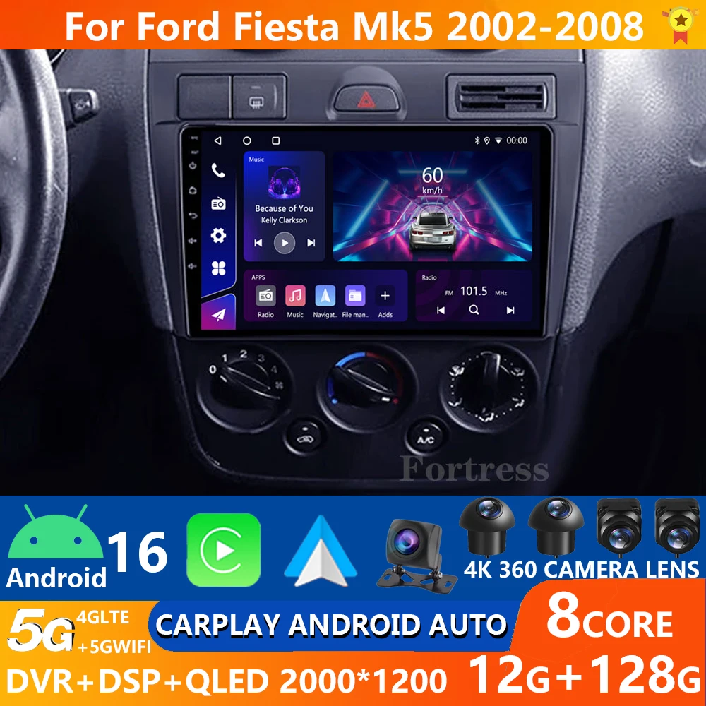 9"13.1"Android Car radio Autoradio For Ford Fiesta 2009-2017 7870 8Core Carplay multimedia 2K Screen ADAS 360 Camera GPS Stereo