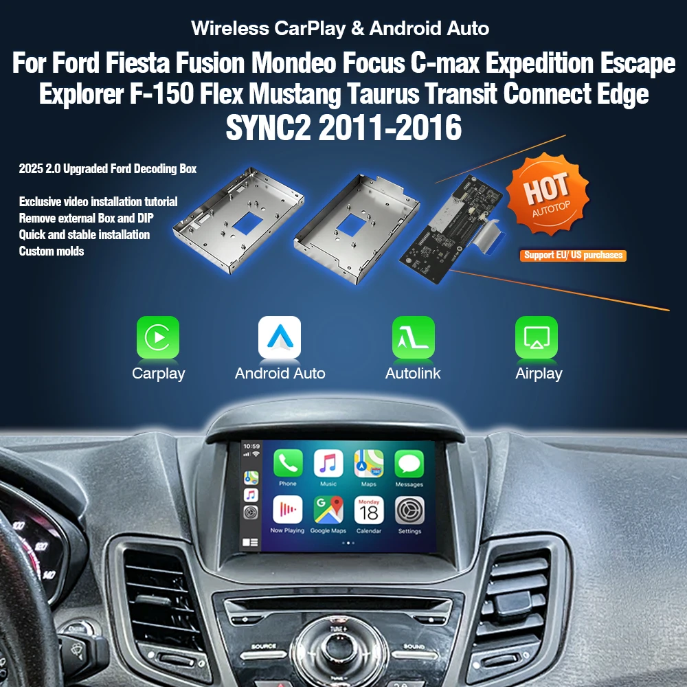 AUTOTOP Wireless Carplay Decoder box for Ford Sync2 System Escape Fiesta Fusion Mondeo Focus Mustang Taurus Transit Android Auto