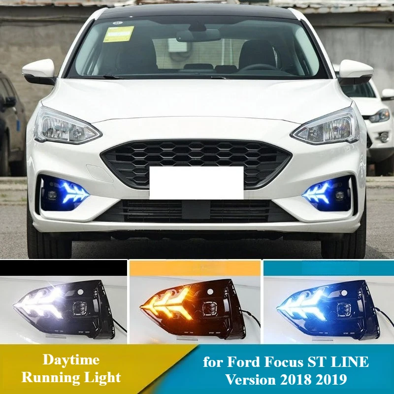 for Ford Focus ST LINE Version 2018 2019 Auto Daytime Running Lights Led Front Fog Lamp Modification Yellow Turn Signal Lamp