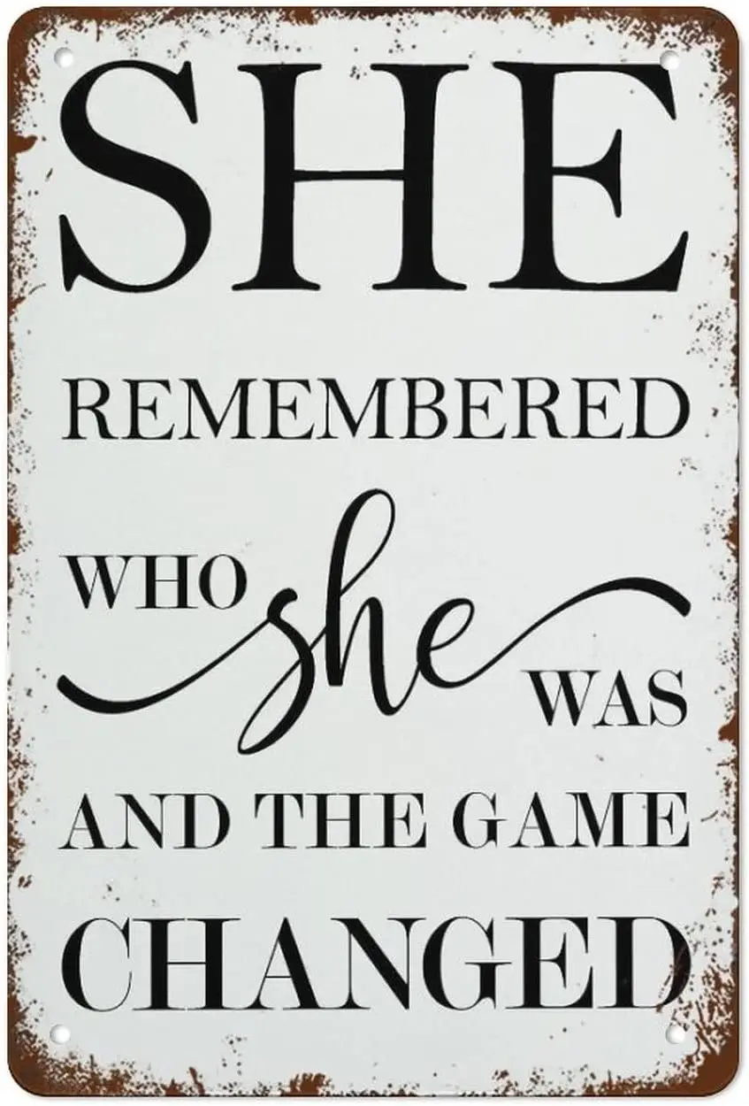 She Remembered Who She Was And The Game Changed Inspirational Quote Metal Tin Sign For Garage Office Bar Cafe Home Decor Girl Ro