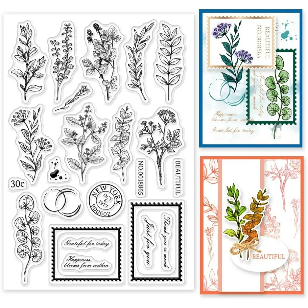Leaves Post Clear Stamps for DIY Scrapbooking Frame Silicone Stamp Seals Stains Transparent Stamps for Cards Making Photo Album