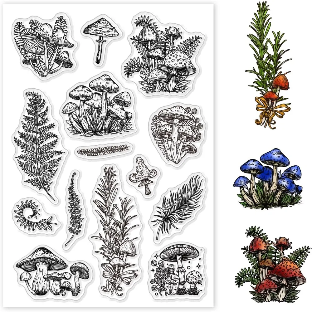 Ferns Mushrooms Clear Stamps for DIY Scrapbooking Mushroom Plants Silicone Stamp Seals Transparent Stamps for Cards Making Photo