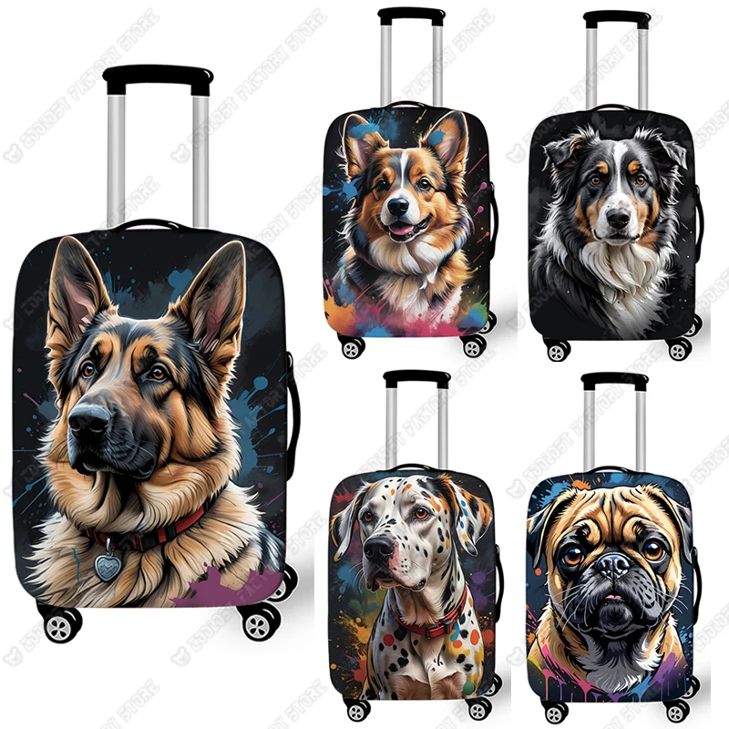 Cute German Shepherd Pug Border Collie Chihuahua Dog Print Luggage Cover Elastic Trolley Case Protective Covers for Travelling
