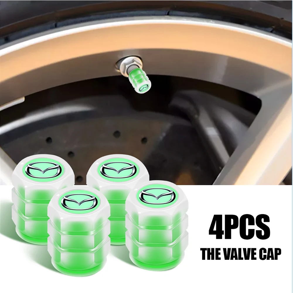 4Pcs Car Wheel Luminous Valve Caps Night Glowing Tire Decoration Stem Cover For Mazda 3 6 CX3 CX-5 KE KF CX7 MX5 CX-8 MS RX-8 GG