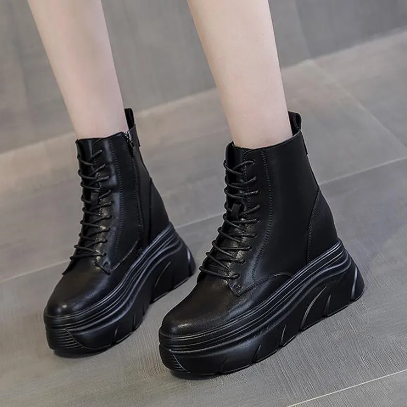 Spring Autumn Women White Ankle Boots Increase Height Thick Sole Winter Outdoor Leisure Shoes For Girls Motorcycle Booties Mujer
