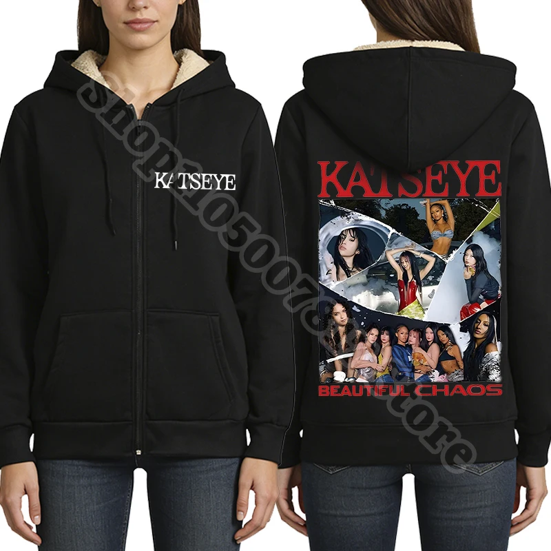 Adult Fashion Zip Fleece Hoodies KATSEYE Casual Hooded Jacket for Women Girl Winter Casual Clothing Coat Cardigan Xmas Gift 2026