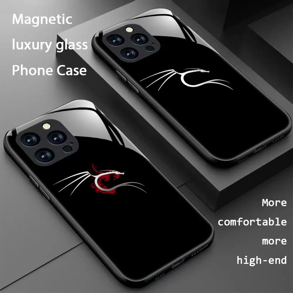K-Kali L-Linux Brand Phone Case For iPhone 16 15 14 13 12 11 X XR XS 8 Plus Mini Pro Max Glass Magnetic Phone Case