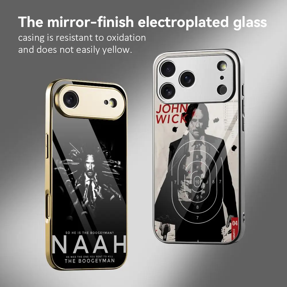J-John Wick Chapter Phone Case For iPhone 17 16 15 14 13 12 Pro Max Plus Electroplated Metal Bumper Case Tempered Glass Back