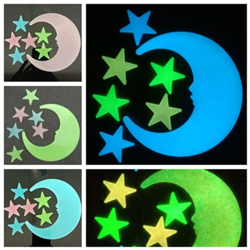7pcs 12cm Moon and 3.5cm Stars Luminous Little Moon Wall Sticker with Stars Decoration 3D Fluorescent Star Patch