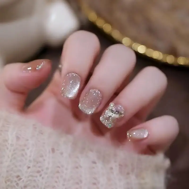 Handmade Nail Art Glowing Removable False Nails Bare Color Aurora Fla Eye Nail Patches for Men And Women