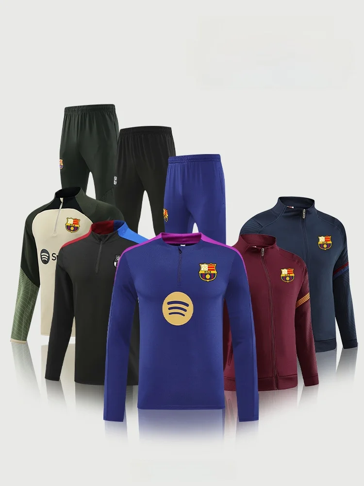 Barcelona Football Training Kit Long Sleeve Sportswear Half Zipper Men's Women's Match Game Uniform Polyester Fiber Moisture ...