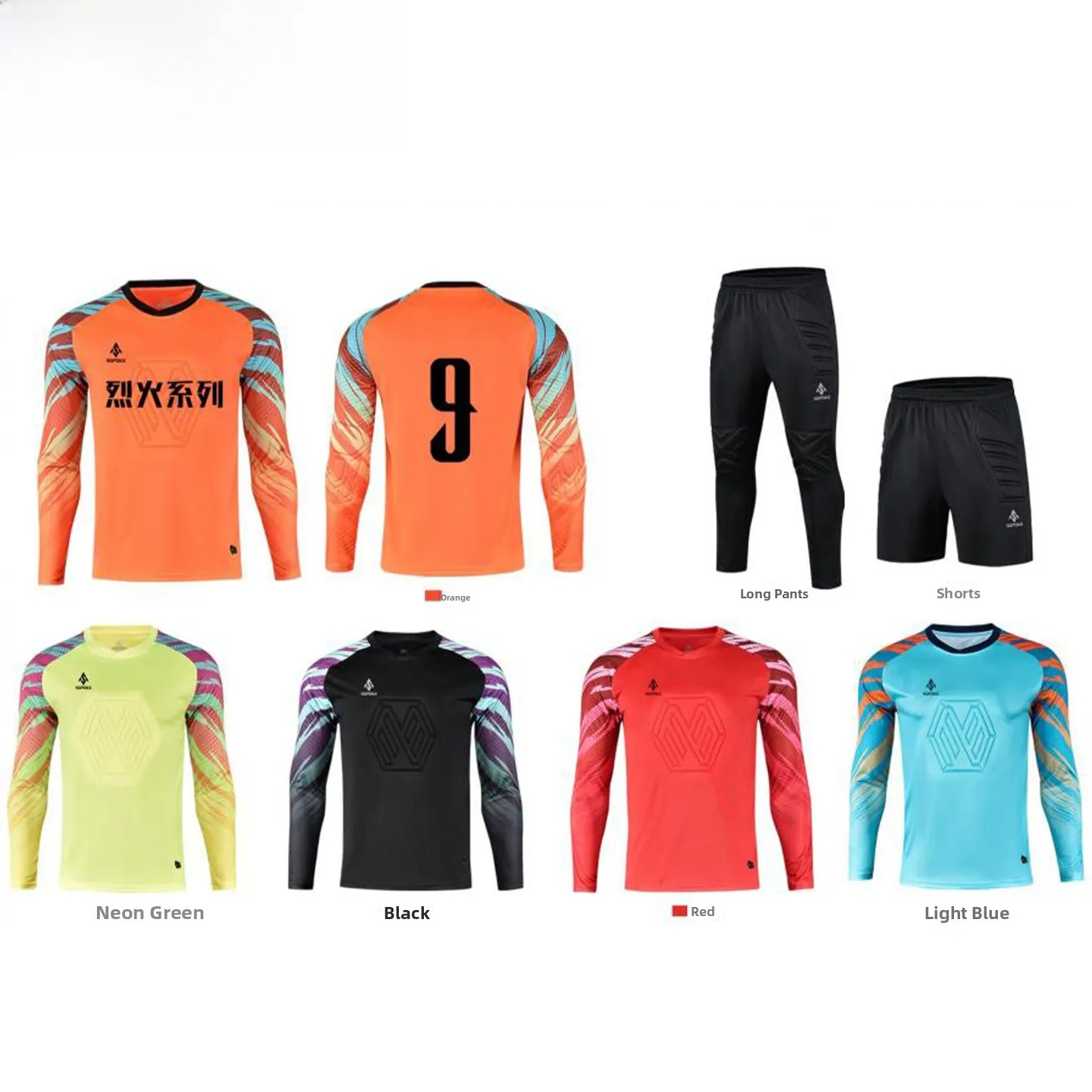 Men's kids Soccer Goalkeeper Uniform Protective Sponge Long Sleeve Training Football Goalkeeper Soccer Jersey Top and Pants