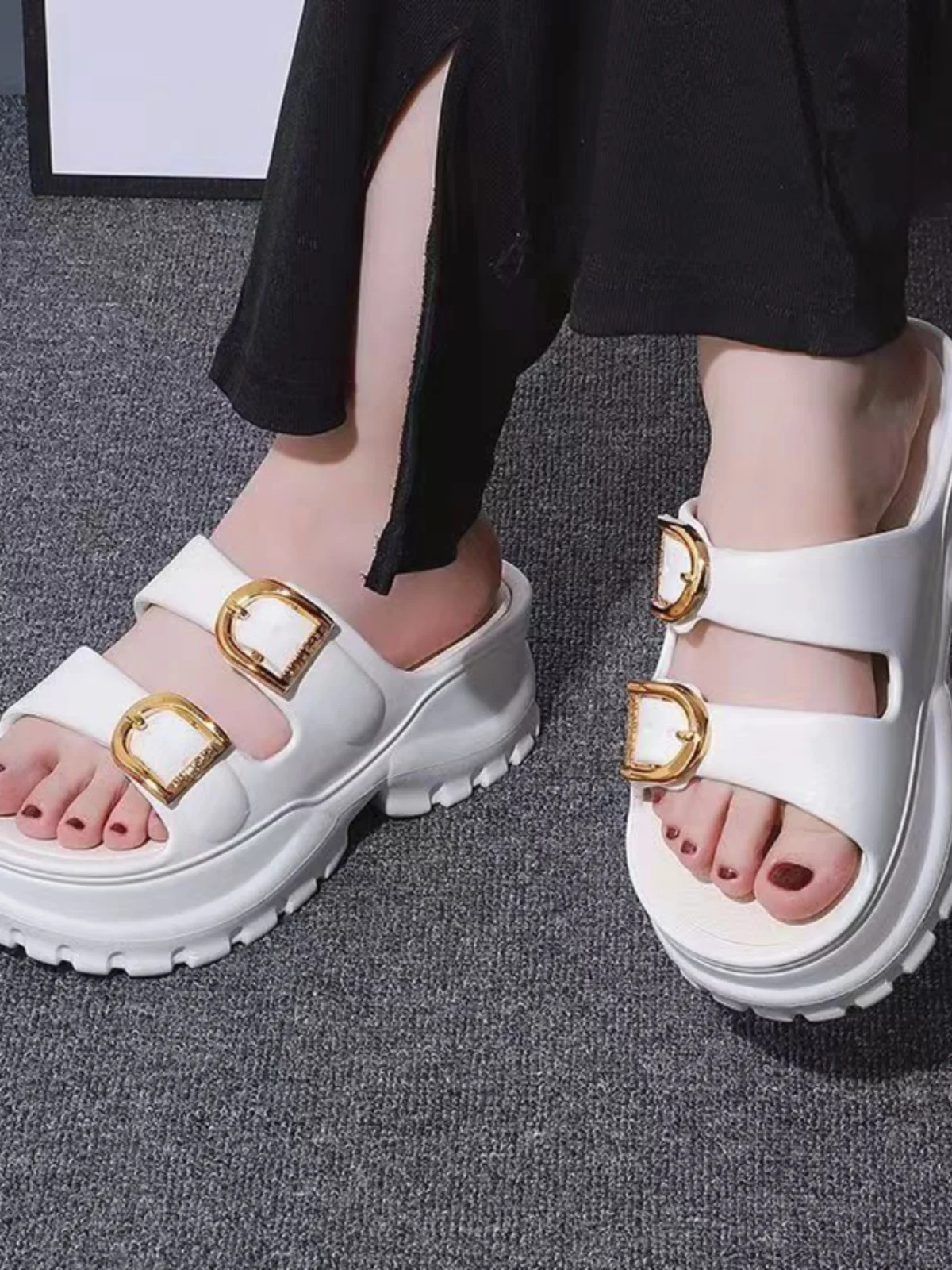 Summer Thi Heel 6cm Women's High Heels Outdoor Wear Versatile Increased Slippers Bule Strap Casual Sle EVA Inner Material
