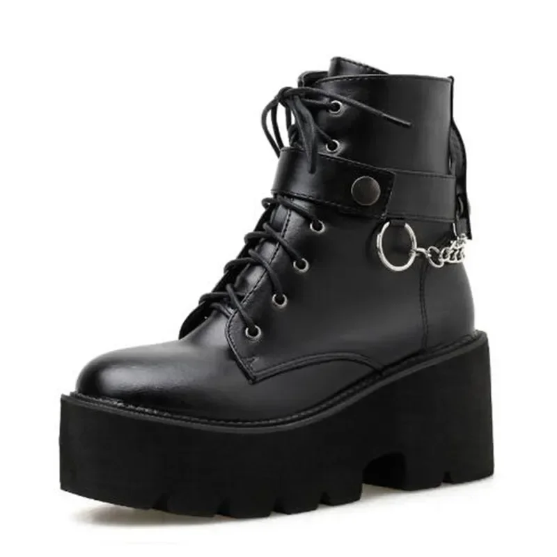 Luxury Platform Boots Women with Chain NEW Fashion Ladies Ankle Boot Chunky Heel Lace Up Black Punk Goth Shoe Autumn Botas Mujer